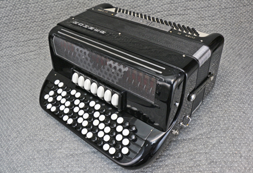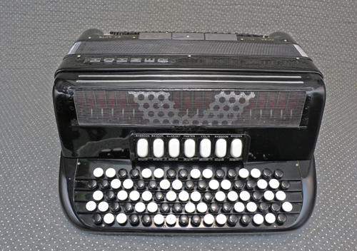 特徴 | ・使ってみて、お気に入りの場合、そのままお買上げいただくサービスもあります。この場合、既払いの月額料金の合計が所定の上代から差し引かれますので、レンタル代金がもどってくる、というサービスです。 ・HOHNER社には幾通りかの製造下請けシステムがありました。 このRiviera Ⅲ DELUXE は製でスイス製で、部品、リードやウッドブロック、キーボードやボタンシステム, ネジなどイタリアの部品が使われています。リードもハンドメードリードです。 ・ドイツ トロッシンゲンで自前で製造した楽器とは部品、サイズ形状、素材が異なります。音色もイタリア風です。 ・この楽器はスタンダードキーボード です。 左右の配列はフレンチと同一です。フレンチとの違いは、右キーボードのボタン間の距離がやや大きく、5列のステップ(階段)の勾配も フレンチにより急になっています。 手が乗せやすい、とくに大きな手の方には人気のあるスタンダードです。あのR.ガリアノさんもこのスタンダードキーボードです。楽器の厚みもフレンチモデルに比べ、薄くできています。ピアノ鍵盤式と同一幅で18㎝。女性の方にも抱えやすいといわれています。このモデルではフロントグリルのミュート機構が重く、音もこもりがちなため取り除いて仕様変更しています。 MML3列で リードをくみつけるブロックが3列になりますからこの長さの楽器に 目いっぱいリードを配置して43音(域)になります。 アノ式の34鍵盤のアコーディオンと同じ程度の幅に 43音がありますから、ボタン式は大きさの割に音域が広いといわれます。また芯のある音質は ジャズやクラシックファンにも評価されています。 ・5列式なので、12の調 いずれの調にも 同じ指運びで 弾けるという大変有利な点があります。(3列で弾ききる運指のばあい) ・音質は チャンバーを思わせる まろやかで、太い音質。Mも音がクリアで MMは程よくトレモロが効いています。 ・レンタルではボタンが初めてという方も少なくありません。どちらにお住まいでも対処しますが、可能な限り 試奏いただくことをお勧めし、お願いします。その際 扱い方や、 ボタンアコの基本についてご説明も致します。 |